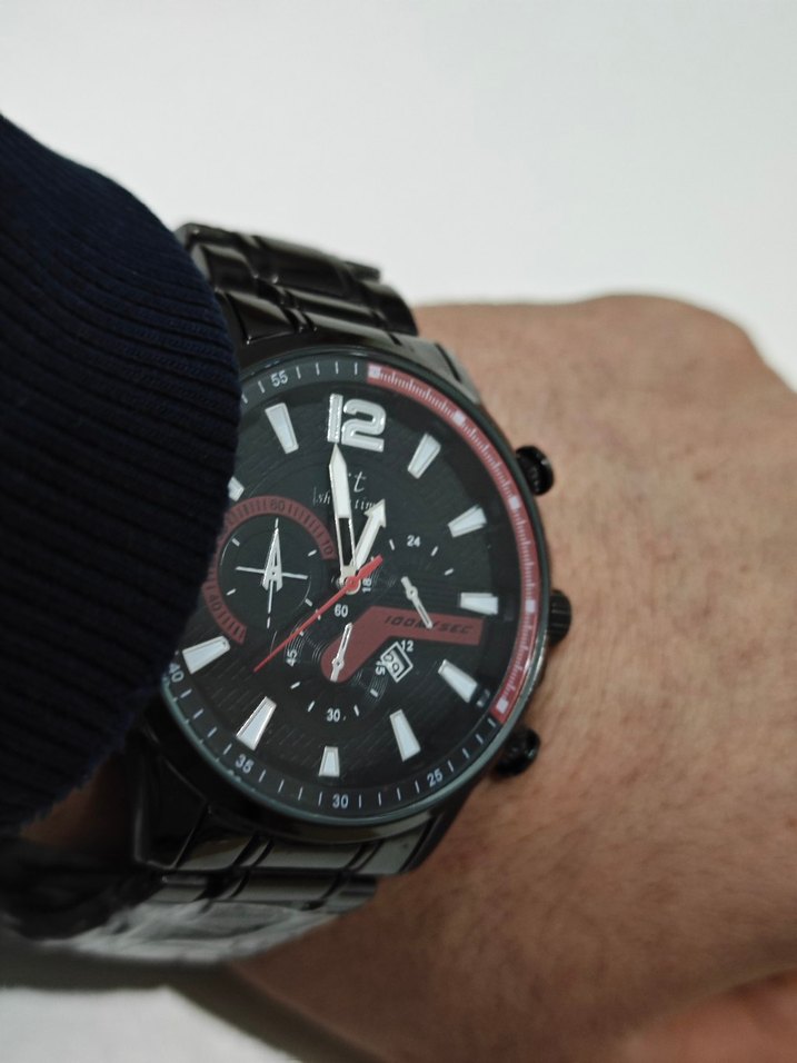 Bu erkek saati, koyu siyah tasarımı, biker stili ve iş tarzını bir araya getirerek güçlü ve işlevsel bir görünüm sunar. ⌚
