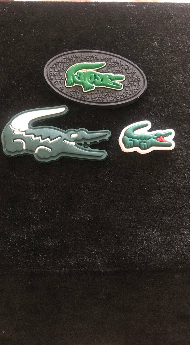Siyah zemin üzerinde yeşil timsah figürlü üç adet erkek biker tarzı rozet seti, rock punk ve grunge punk havası katıyor.
