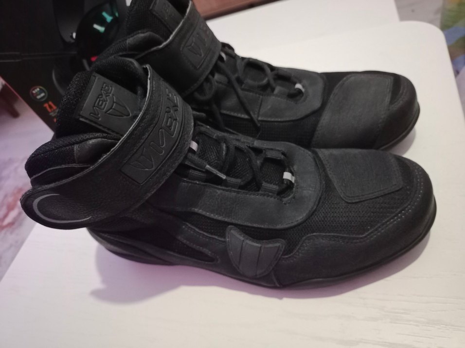 Siyah kauçuk malzemeden yapılmış, Velcro bantlı erkek biker tarzı spor bot, rock punk havasıyla athleisure görünüm için uygundur.