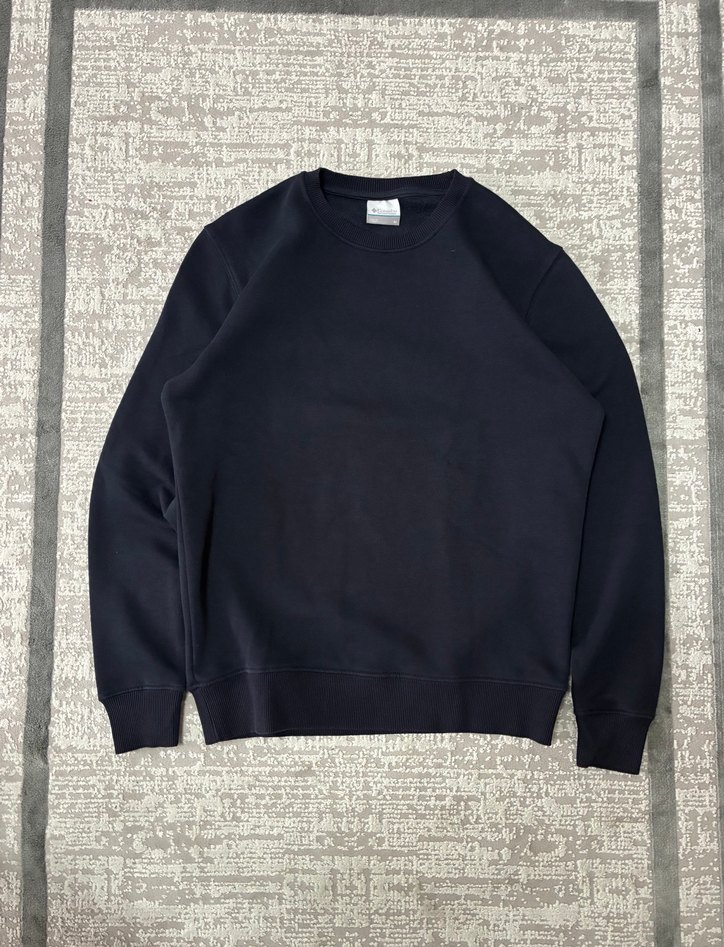Siyah erkek sweatshirt, bisiklet yaka ve uzun kolludur. Rahat kesimi ve yumuşak, sıcak kumaşıyla gündelik kullanıma uygundur. Minimalist ve desensiz tasarımı vardır.
