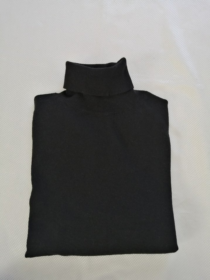 Siyah renkte, boğazlı ve uzun kollu, L beden triko kumaştan yapılmış, günlük kullanıma uygun, az kullanılmıştır. . Boy64cm göğüs58cm ölçüler esnetmeden alınmıştır.