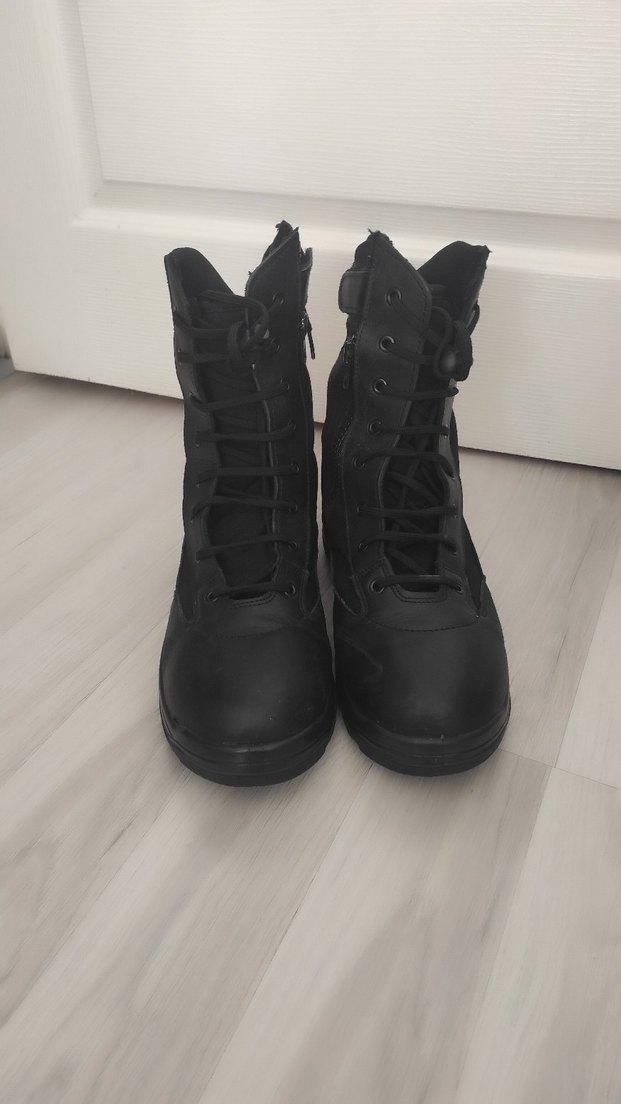 Siyah kauçuk kemerli goth erkek botları, bağcıklı ve fermuarlı. Sokak stili ve rock punk havası sunar, günlük kullanım için uygundur. Bir kez giyildi, küçük geldiğinden satıyorum