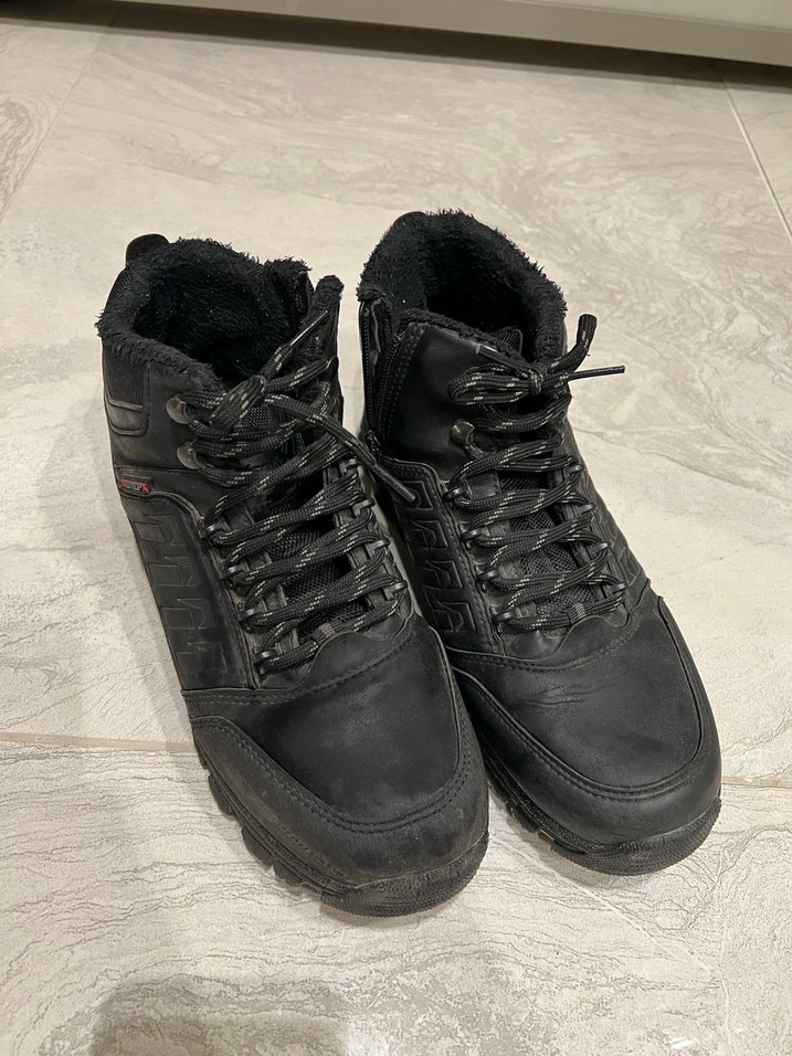 Kauçuk malzemeden siyah erkek botlar, içi kürk detaylıdır. Gotik tarzda, dış mekan kullanımı için uygundur, rahat ve trend görünümlüdür.