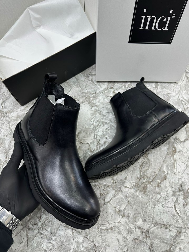 İnci markasının siyah erkek lastik botları, günlük kullanıma uygun düz ve desensiz tasarıma sahiptir. Rahat ve şık