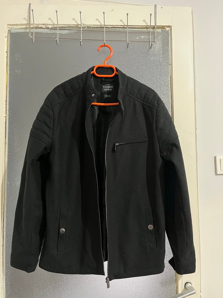 Siyah renkte, uzun kollu, regular fit erkek ceket.