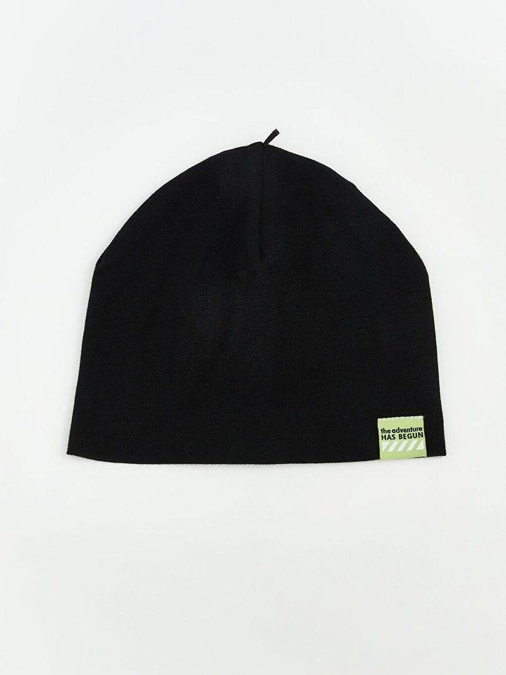 6-10yas Siyah erkek cocuk bere, yumuşak ve sıcak dokusu ile sade, rahat şıklık sunar. Küçük renkli etiket detayı vardır.