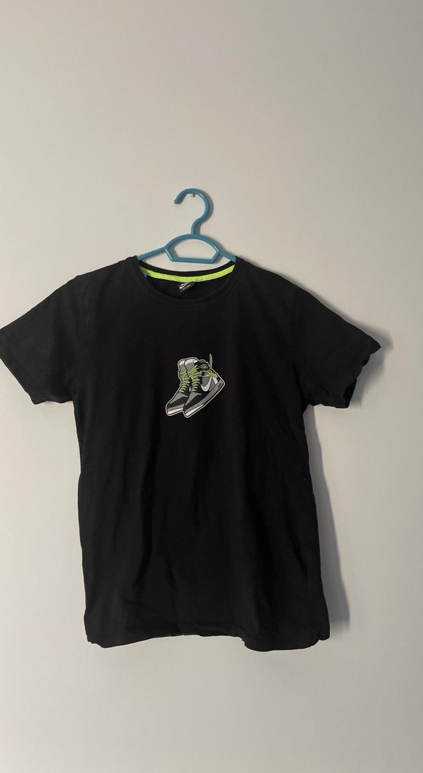 Siyah renkli, kısa kollu, yuvarlak yaka erkek çocuk tişörtü. Baskılı sneaker deseni ve cırt cırt detayına sahiptir. Sentetik kumaştan üretilmiştir. Orijinal değildir  14 yaş 164 bedendir