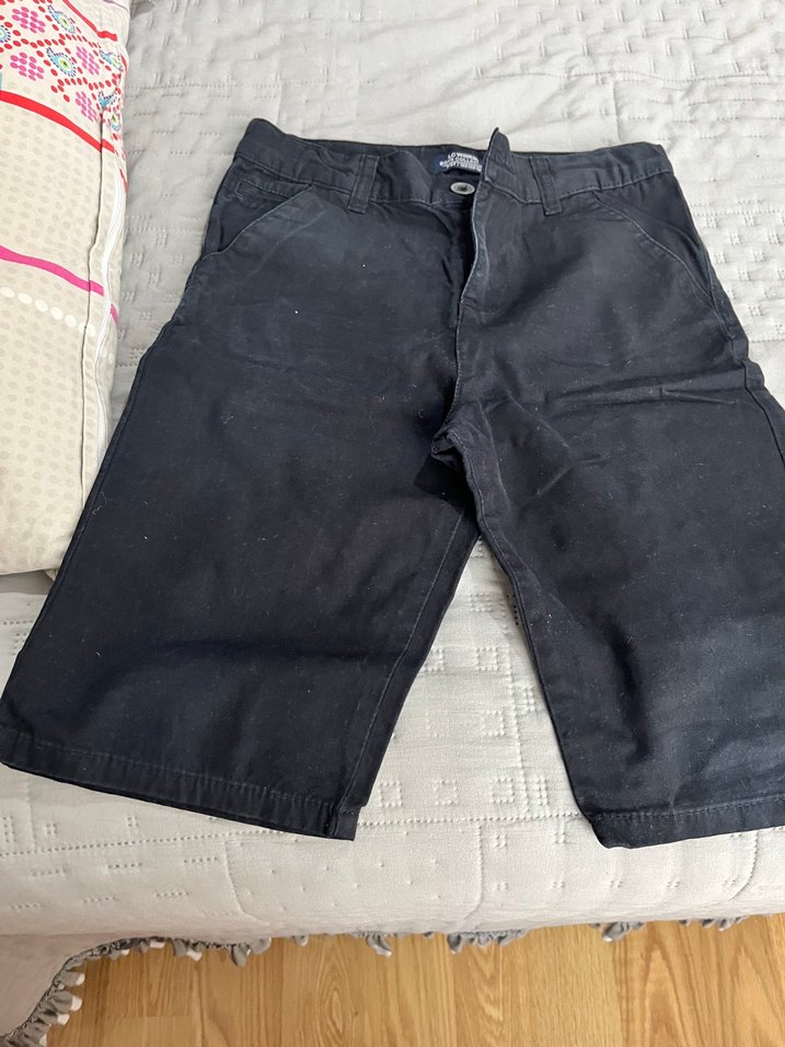 Siyah renkli, bol kesim ve desen içermeyen denim erkek çocuk şortu, sokak modasına uygun, zahmetsiz şıklık sunar.