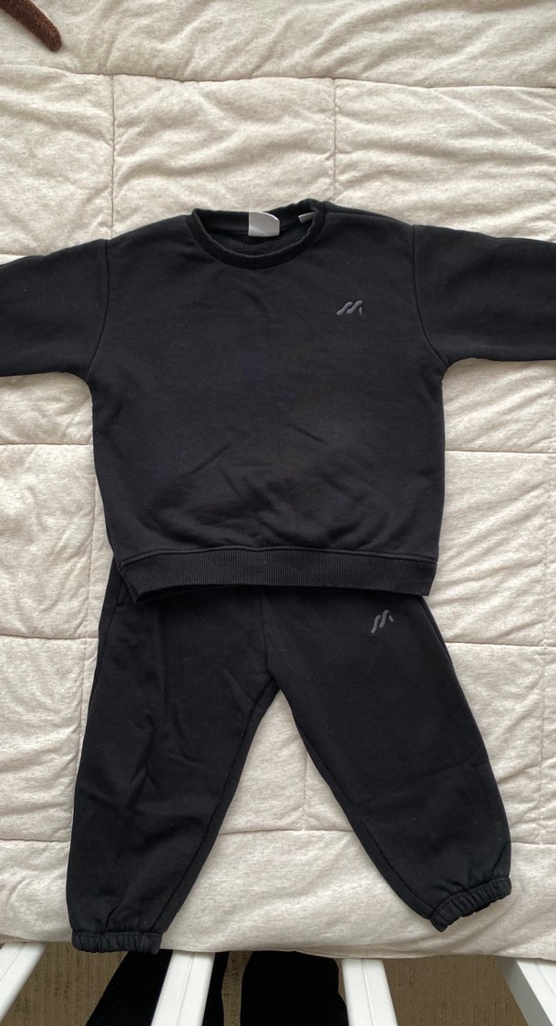 Sayılı giyildi yesyeni. Siyah renkli, bol kesim erkek çocuk eşofman takımı; bisiklet yaka sweatshirt ve uyumlu alt pantolondan oluşur. Yumuşak ve sıcak kumaştan, desen içermeyen sade bir sokak stili sunar.