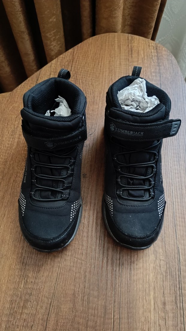 Siyah kauçuk erkek çocuk botları, cırt cırtlı kapanışlı, sokak stili ve rock punk havasında. Düz desensiz, koyu tonlarda, günlük kullanıma uygun. Lumberjack az kaullanildi