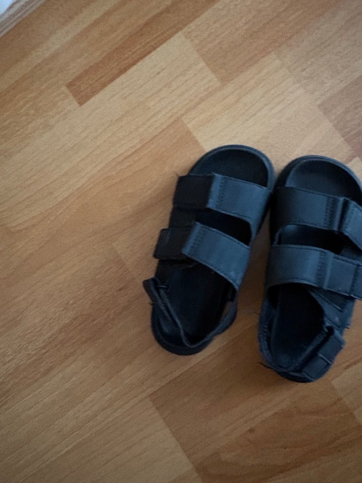 Siyah renkli, kauçuk materyalden yapılmış, cırt cırtlı kayışlara sahip erkek çocuk terliği. Sokak stiline uygun sade tasarım.