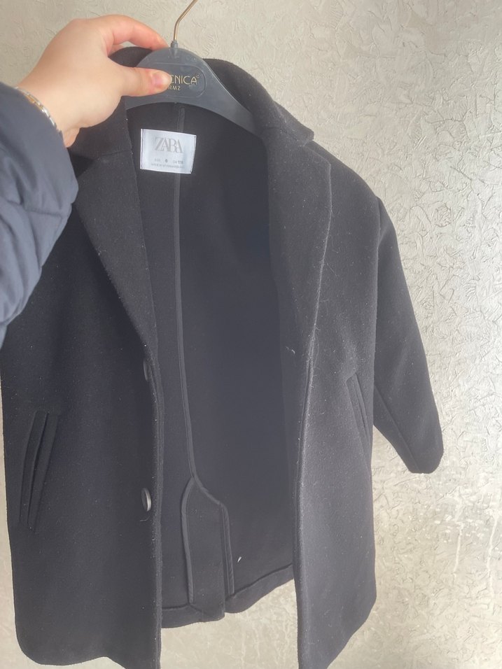 Siyah renk erkek çocuk kaban, düğmeli ve keskin yakalıdır. Yumuşak ve sıcak kumaştan üretilmiş, rahat kesim ve sokak stili için uygun.