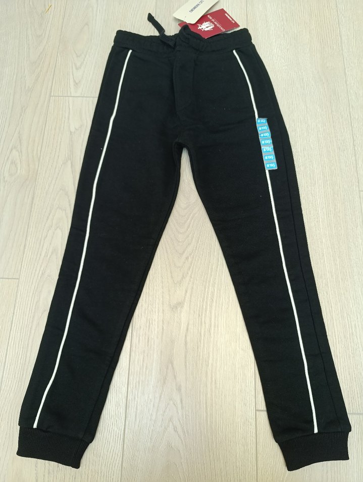 Siyah ve beyaz yan şerit detaylı, elastik bel ve yumuşak kumaşlı erkek çocuk eşofman altı. Sardonlu değil ama kışa uygun tok kumaşı var, 4 ve 10 yaşıda mevcut sıfır