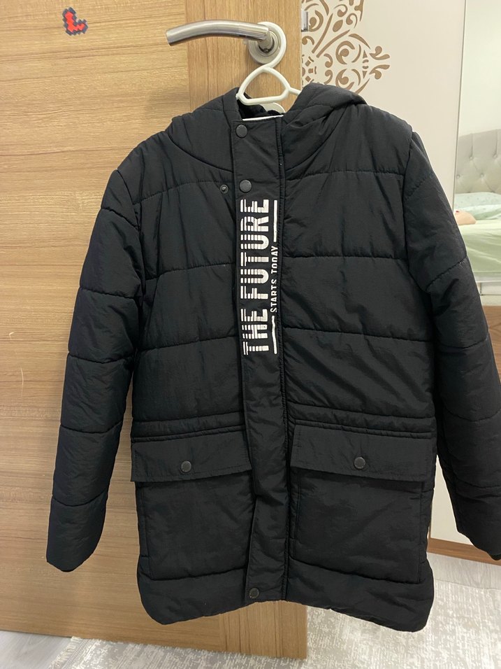 Siyah renkli, kapitone desenli erkek çocuk kabanı, düğmeli ve kesimi vücuda oturur. Yumuşak ve sıcak tutan kumaştan üretilmiştir, iki düğmeli ceplidir. Temizdir deformesi yoktur.10 11 yaştır