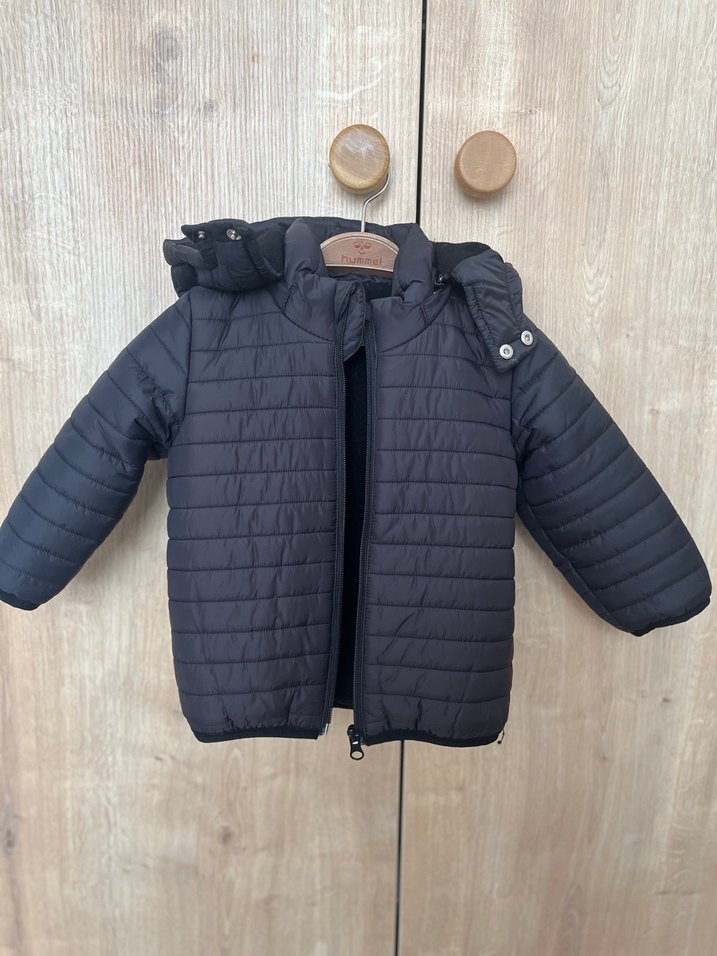 Siyah renkli, kapitone desenli, içi yumuşak ve sıcak astarlı, kapüşonu kürklü ve çıkarılabilir olan erkek çocuk montu.