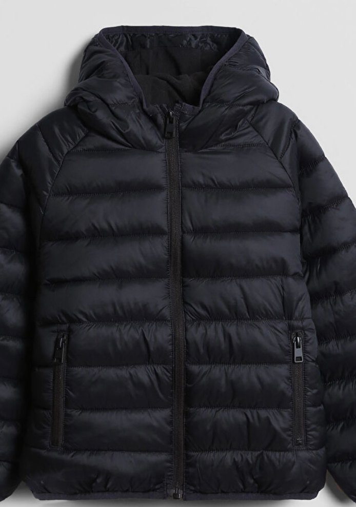 Siyah Erkek Çocuk Kapüşonlu Kışlık Mont