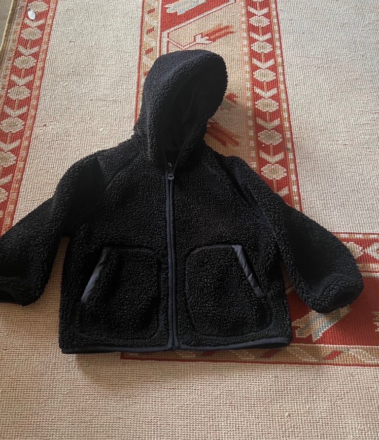 Siyah Erkek Çocuk Kapüşonlu Peluş Ceket