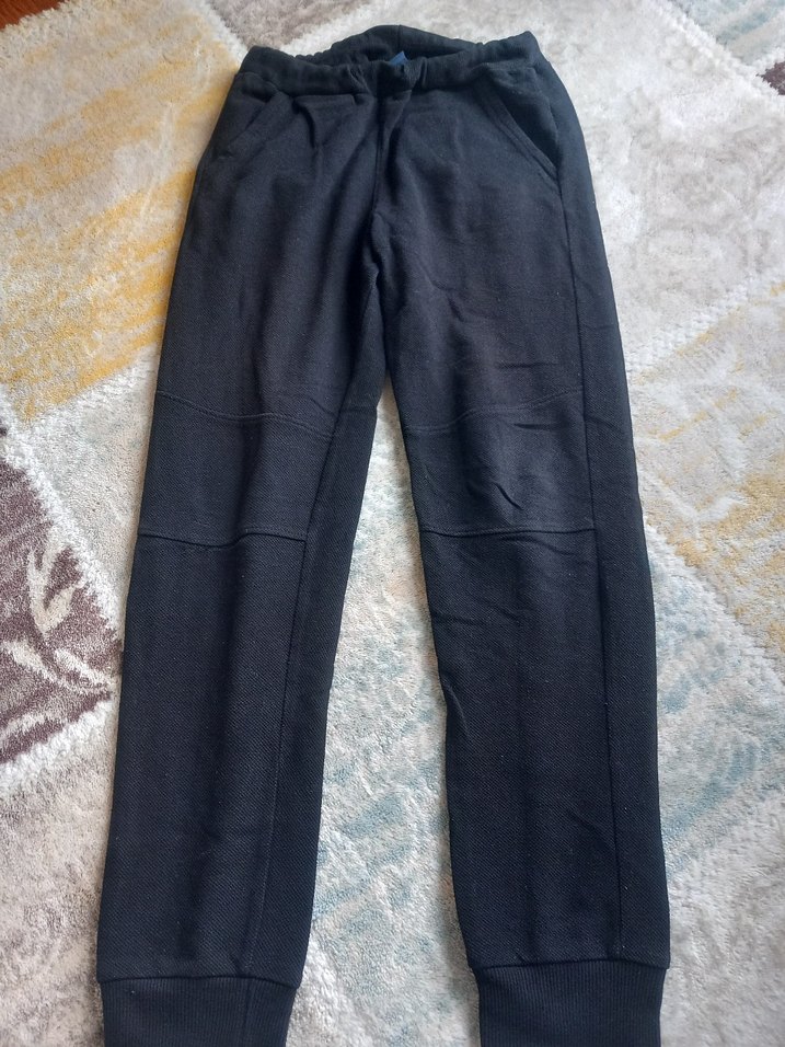Siyah, rahat kesim erkek çocuk eşofman altı, yumuşak ve sıcak kumaştan, yan cepler ve konforlu bel bandıyla. Günlük sokak stili için uygun.