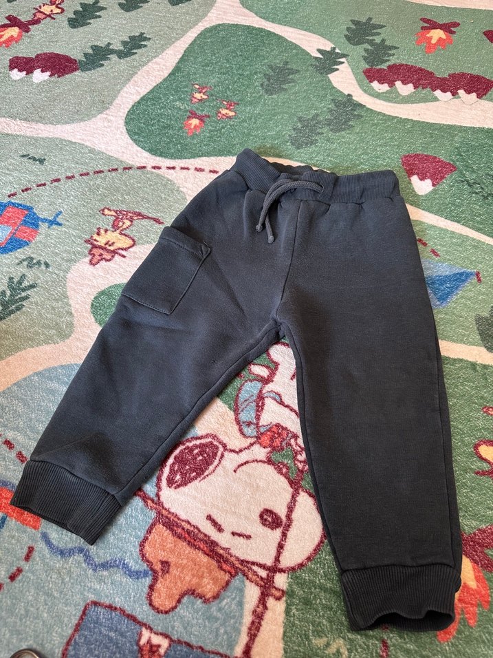 Siyah renkli, rahat kesim erkek çocuk eşofman altı, yumuşak ve sıcak kumaştan, cırt cırtlı cep detaylı, sokak stiline uygun.