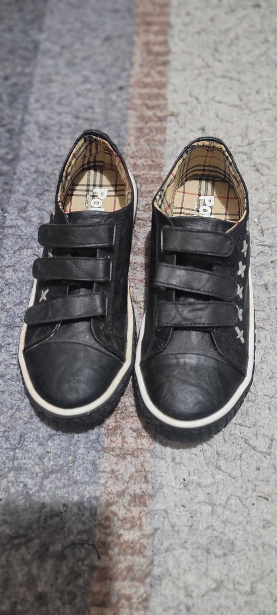 Siyah renkte, lastik tabanlı ve tokalı erkek çocuk spor ayakkabısı. Rahat ve günlük sokak tarzına uygun.
