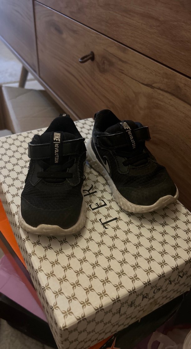 Siyah renkte, Velcro bantlı ve kauçuk tabanlı erkek çocuk spor ayakkabısı. Sokak stili için uygundur. Temiz ürün az kullanıldı orijinal