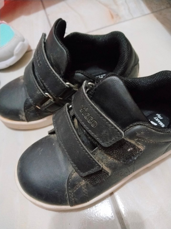 Siyah renkli, kauçuk tabanlı ve Velcro bantlı erkek çocuk spor ayakkabısı. Sokak tarzına uygun, desen içermeyen şık tasarım.