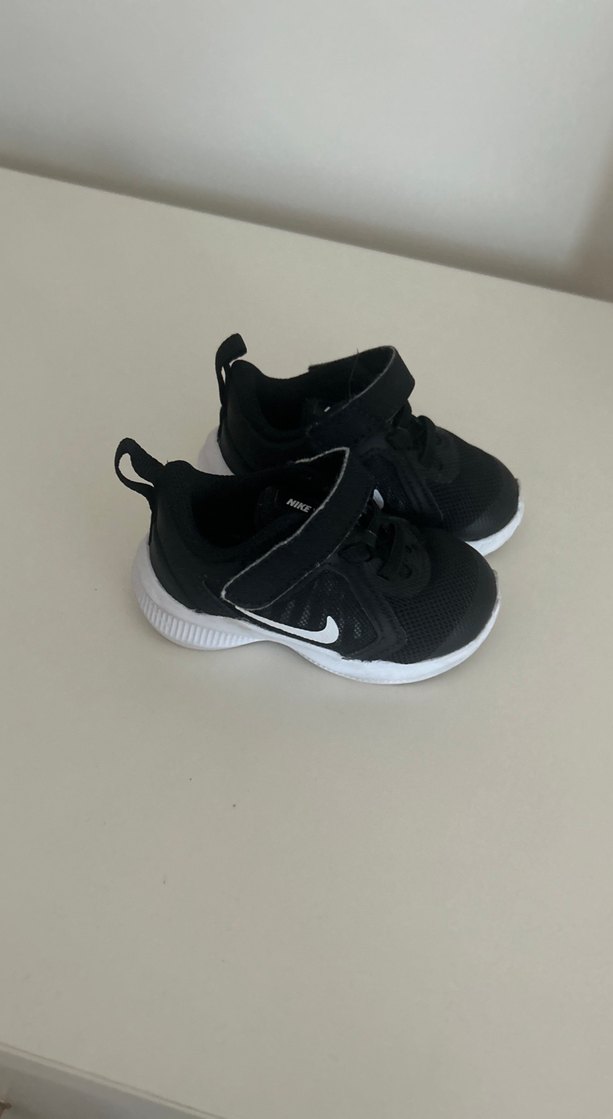 Siyah erkek çocuk spor ayakkabısı, Velcro bantlı ve kauçuk tabanlıdır. Temel sokak stiliyle rahat kullanım sağlar.