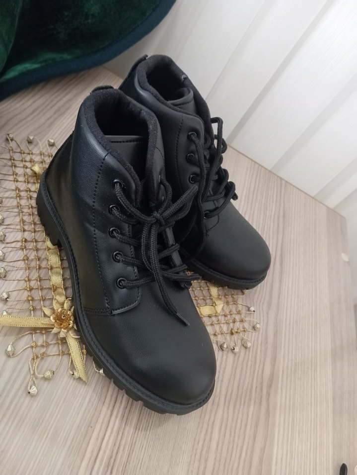 Siyah kauçuk malzemeden yapılmış, tokalı ve bağcıklı erkek çocuk botu. Koyu renkte, desen içermeyen street wear tarzında.