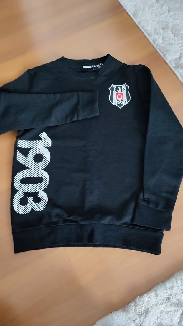 Siyah renkli, uzun kollu ve yuvarlak yaka erkek çocuk sweatshirtü. 1903 baskısı ve amblem detaylarıyla rahat kesim, yumuşak kumaş kullanılmıştır. çok temiz