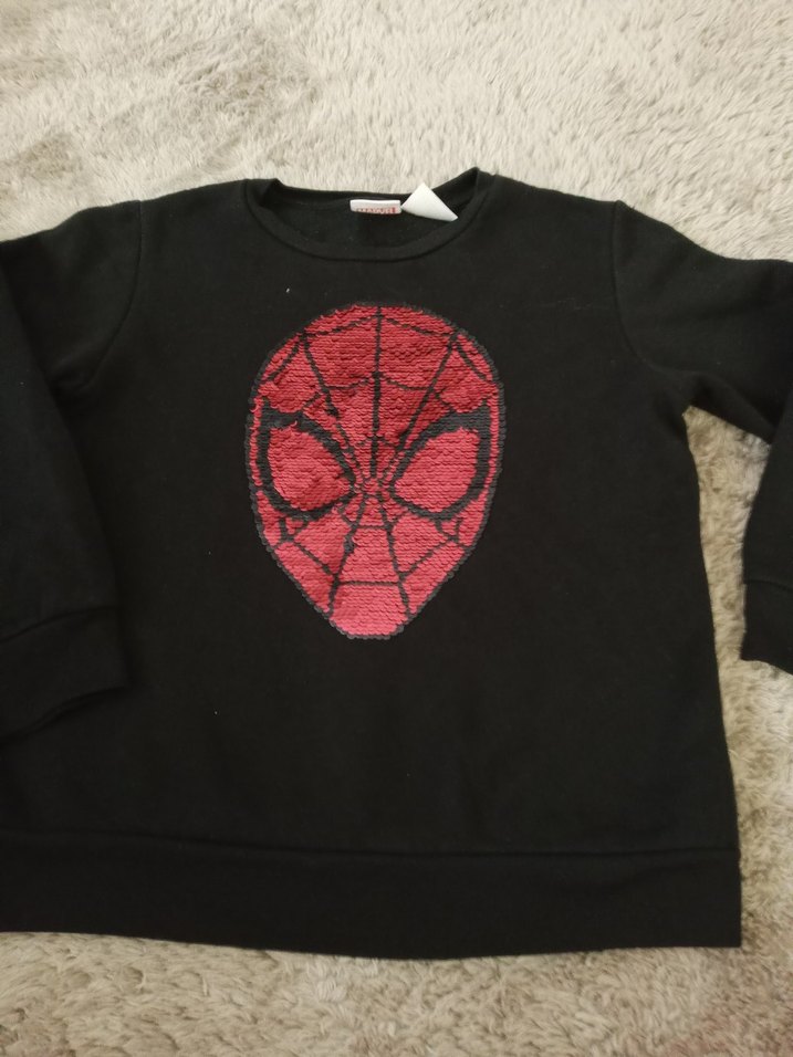 Fitted kesim siyah erkek çocuk sweatshirt, uzun kollu ve bisiklet yaka. Önünde nakışlı Spider-Man yüzü deseni bulunur. Yumuşak ve sıcak kumaştan, günlük sokak stili için uygundur. ️