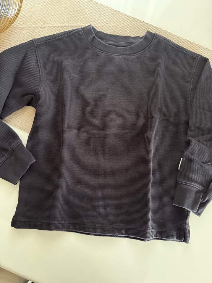 Siyah renkli, yuvarlak yaka ve uzun kollu erkek çocuk sweatshirtü, bol kesim ve yumuşak, sıcak kumaştan üretilmiştir. Düz ve normcore tarzındadır.