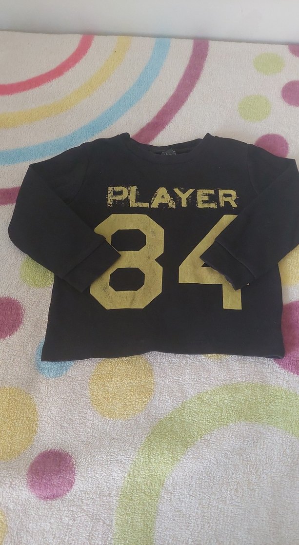 Siyah renkli, uzun kollu ve bol kesim erkek çocuk sweatshirtü. Örme dokusu ve 'PLAYER 84' baskısı ile sokak tarzını yansıtıyor. Yumuşak ve sıcak kumaştan üretilmiştir.