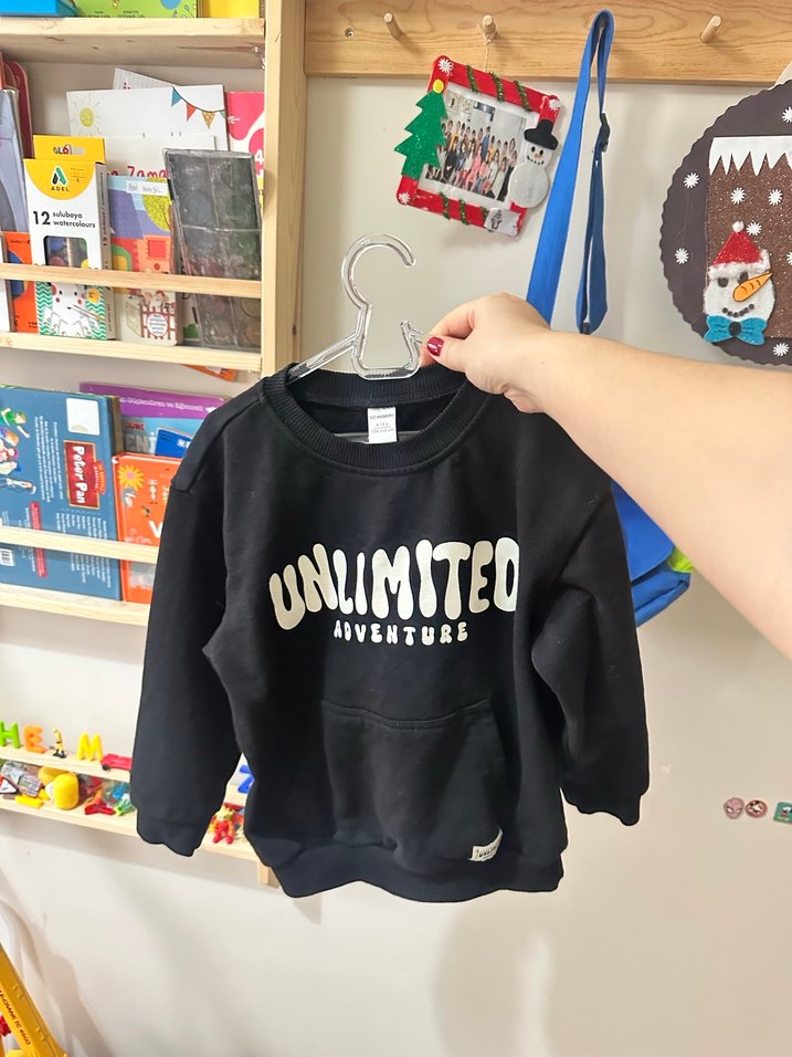 Siyah renkli, uzun kollu ve yuvarlak yakalı erkek çocuk sweatshirtü, rahat kesimi ve yumuşak kumaşıyla içi polarlı yakın zamında almıştım ve giyemedik tam beden alınca giyemedi .