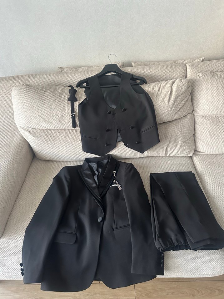 Siyah renkli, yelekli üçlü takım elbise 11 yaş sadece bir kez giyildi sıfır gibi hiç bir deformesi yoktur
