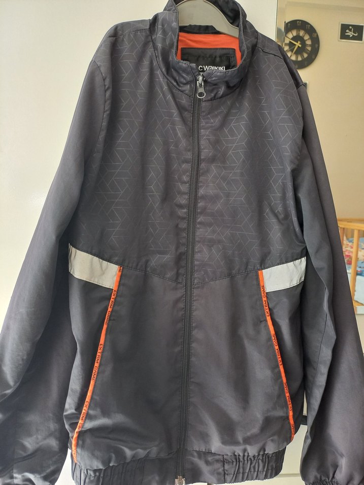 Siyah renkte, yüksek yakalı ve fermuarlı erkek çocuk yağmurluk .şerit detaylar ve turuncu vurgular içerir. Rahat kesim ve sokak stiline uygun.