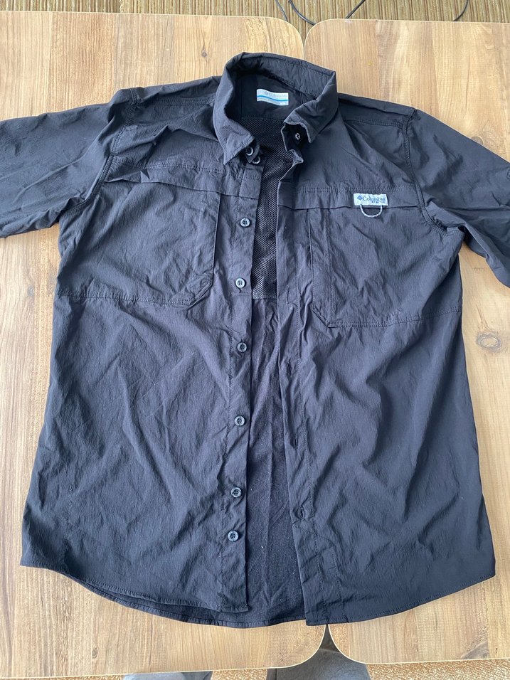 Siyah erkek gömlek, uzun kollu,düğmeli ve yakalıdır. Hafif sentetik kumaştan, rahat bol kesim ve günlük dış mekan kullanımı için uygundur.