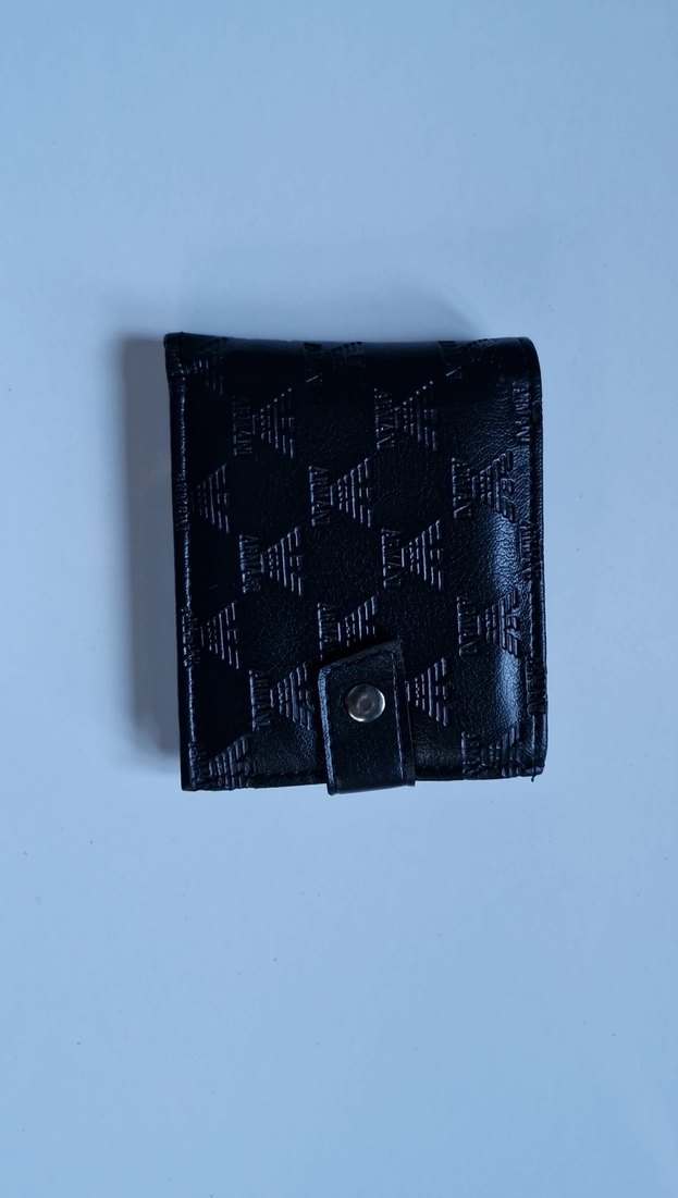 Siyah erkek cüzdan, minimal desenli ve çıtçıtlı kapaklı, sokak stili için uygun.