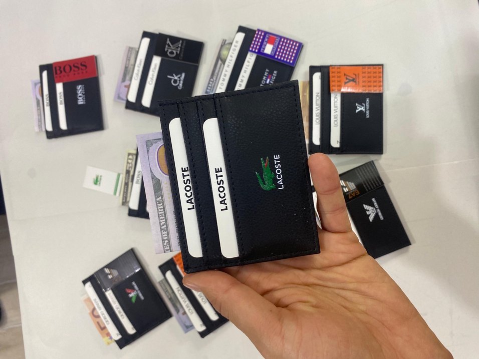 Siyah renkte, Lacoste baskılı erkek cüzdanı. Çoklu kart bölmeleriyle iş ve sokak stilini birleştirir.