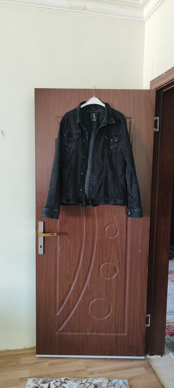 Siyah erkek Denim Ceket Düğmeli