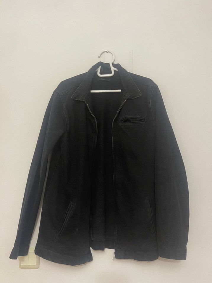 Siyah Erkek Denim Ceket, Fermuarlı, Midi Boy