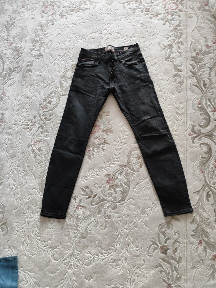 Siyah erkek denim jean, normal boy ve regular fit. Bağcıklı detaylı, desensiz tasarımıyla günlük sokak stiline uygun.