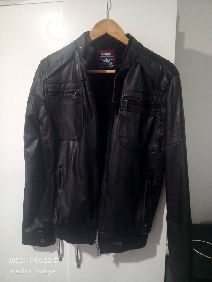 Siyah, dar kesim deri biker ceket, uzun kollu ve yaka kısmı kesik detaylıdır. Fermuarlı cepleriyle günlük kullanıma uygundur.İç kısmı tüylü Tertemizdir hiç bir deformesi yoktur M beden slifit kalıptır S beden giyenede olur.