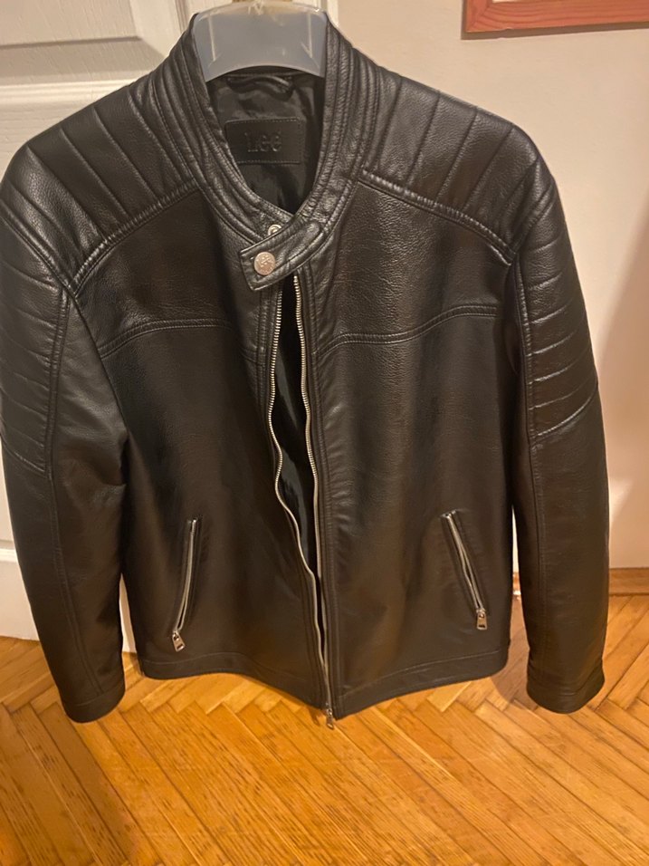 Siyah deri biker ceketin notched lapel yakası, uzun kolları ve tokalı tasarımı vardır. Regular fit ve klasik stilde, günlük kullanıma uygundur. İki kol arası en 61 boy omuzdan 74 cm dir.174 boy 90 kg da sadece denendi kollar kastığı için küçük geldi .Bir aylık üründür