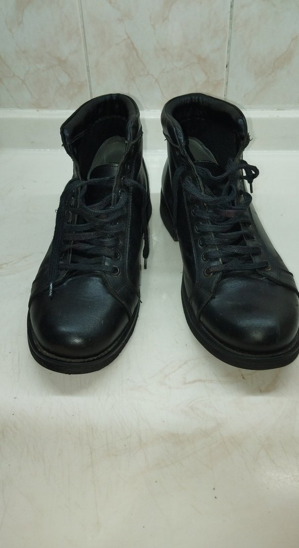 Siyah, bağcıklı erkek deri botlar, günlük kullanım için rahat ve şık bir görünüm sunar.