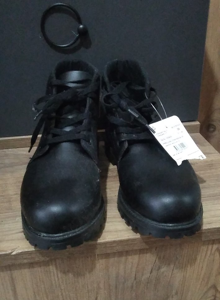 Siyah erkek botlar, tokalı ve kauçuk malzemeden yapılmıştır. Minimalist goth tarzında, günlük kullanıma uygun, rock punk havası taşıyan desensiz botlar.