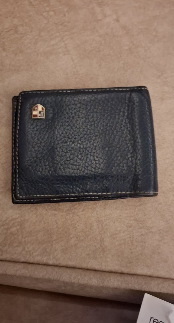 Dokulu deri ve küçük metal logo detayına sahip siyah erkek cüzdan. Düzgün dikişli ve klasik tasarımlı, streetwear tarzına uygun.