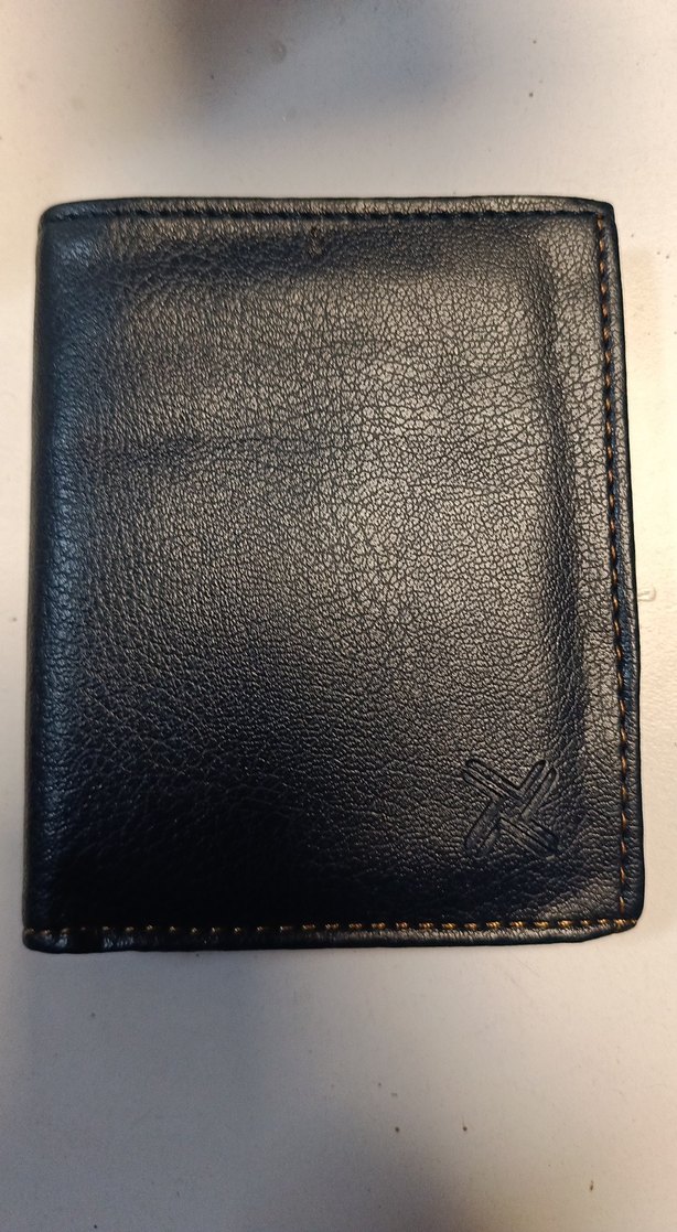 Köşede hafif kabartma detaylı, siyah erkek deri cüzdan. Klasik ve desensiz tasarımıyla iş kullanımı için uygundur.