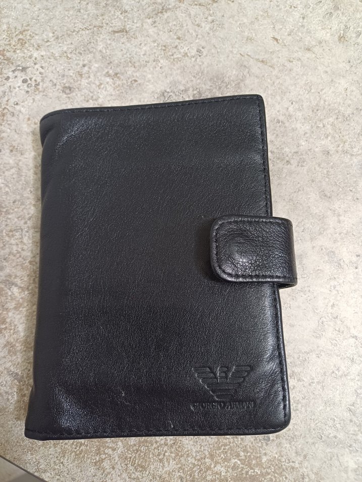 Siyah, desen içermeyen erkek deri cüzdan, minimal ve klasik gotik tarzda, sağlam çıtçıtlı kapanışa sahip.