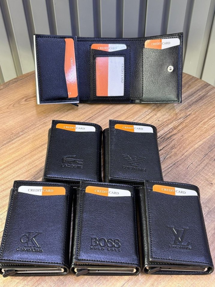 BOSS, Calvin Klein ve Lacoste gibi markaların baskılı logolu siyah erkek deri cüzdanları, çoklu kart bölmeleri ve şık sokak stiliyle.(bby70)