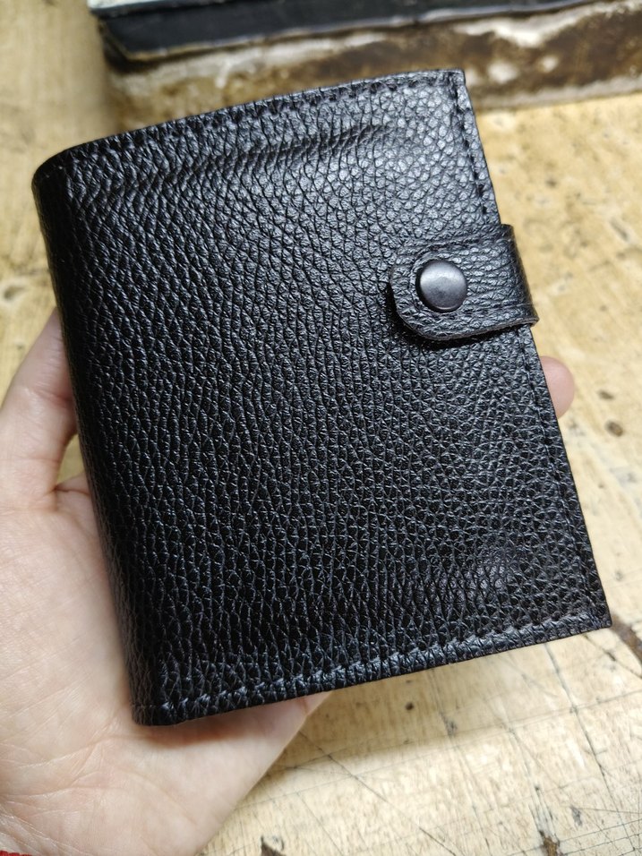 Çıtçıtlı-patlı, siyah erkek suni deri cüzdan. Minimalist ve biker tarzında. (Farklı renk ve modelleri de mevcuttur)